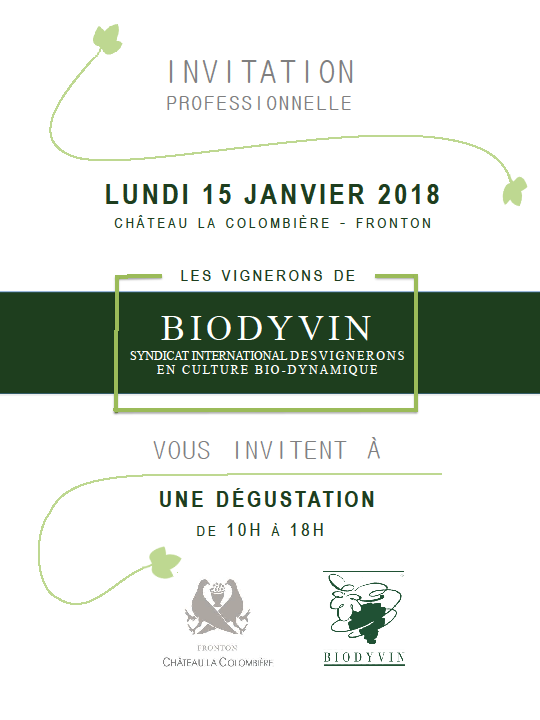 Nous avons le plaisir de vous convier à la prochaine dégustation BIODYVIN, en présence de plus de 60 vignerons.